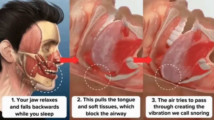 Snoring happens when the muscles in your throat relax during sleep, narrowing your airway and causing vibrations. The SoniVita Anti-Snoring Mouthpiece solves this naturally and effectively.